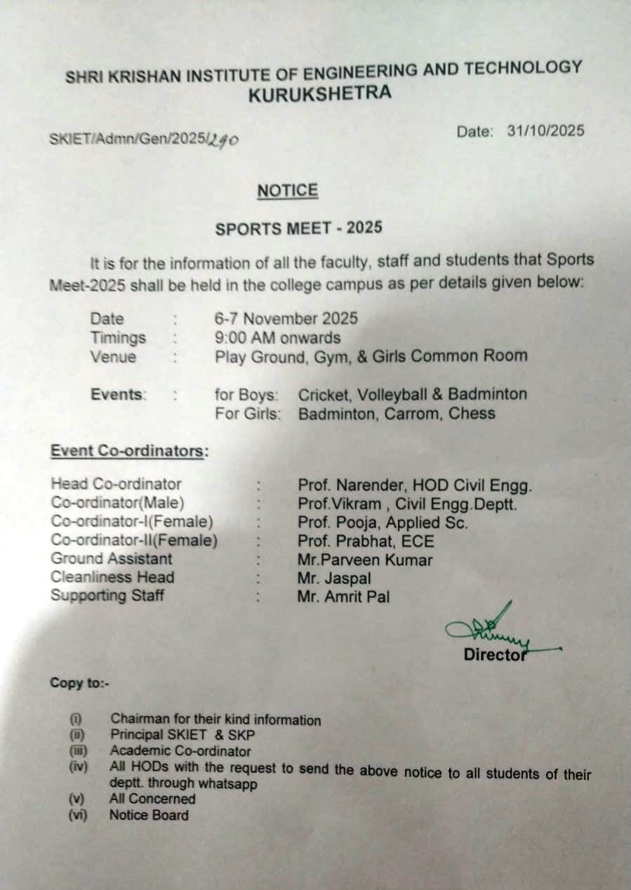 Shri Krishan Institute of Engineering and Technology was established in 1997 under the aegis of Shri Krishan Educational TRUST, Kurukshetra with a mission of imparting quality education