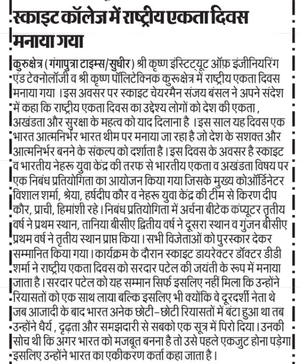 #SKIET#SKPKurukshetra#NationalUnityDay#EktaDiwas#EssayCompetition#NehruYuvaKendra#UnityInDiversity#SardarPatel#SKIETEvents